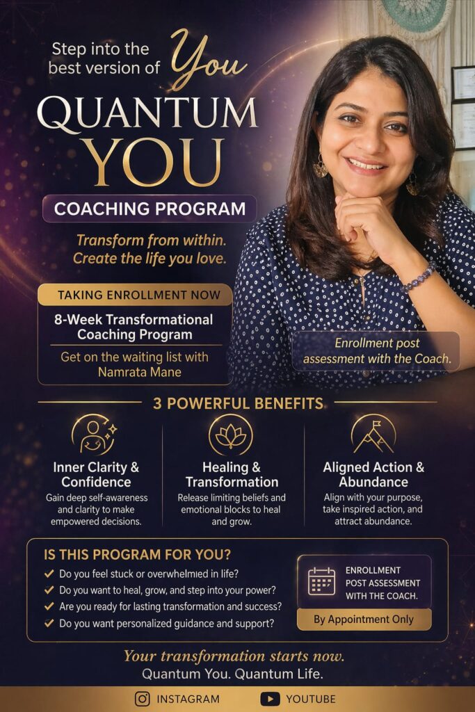 Welcome to the Quantum Wellness Retreat with Namrata Mane—a sacred space for deep transformation, spiritual awakening, and holistic healing. This immersive retreat is designed for those seeking clarity, renewal, and quantum-level shifts in their consciousness and life path.